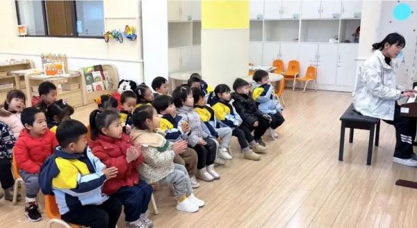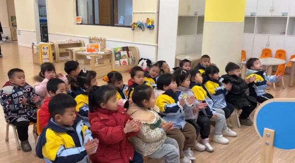 《指南》中指出:在幼兒園教育中,要創(chuàng)造條件讓幼兒接觸適宜的、多種形式的音樂作品,豐富幼兒對音樂的感受和體驗。幼兒開心地演唱著歌曲《新年好》,感受新年氛圍。