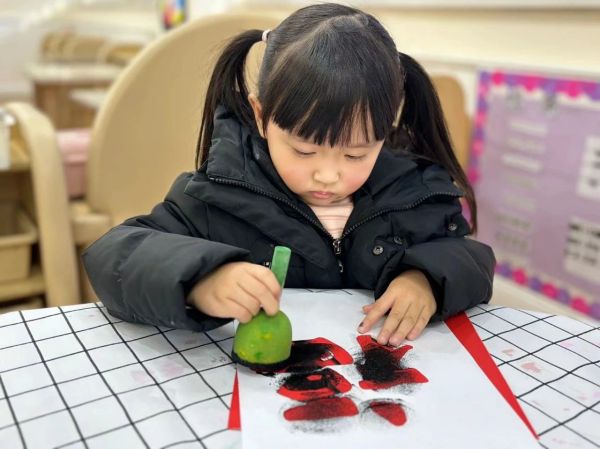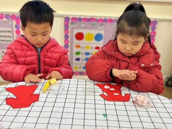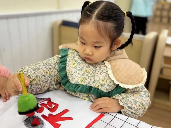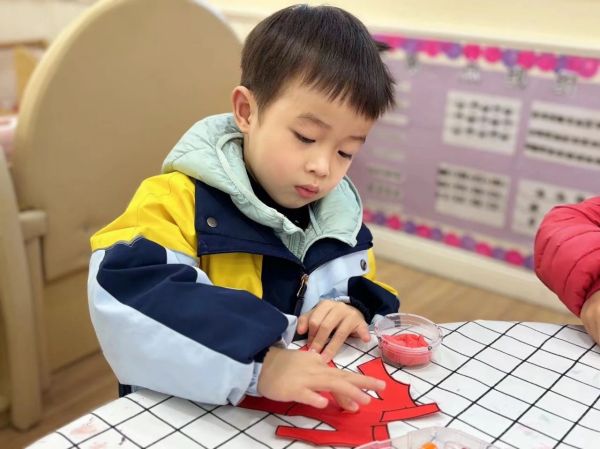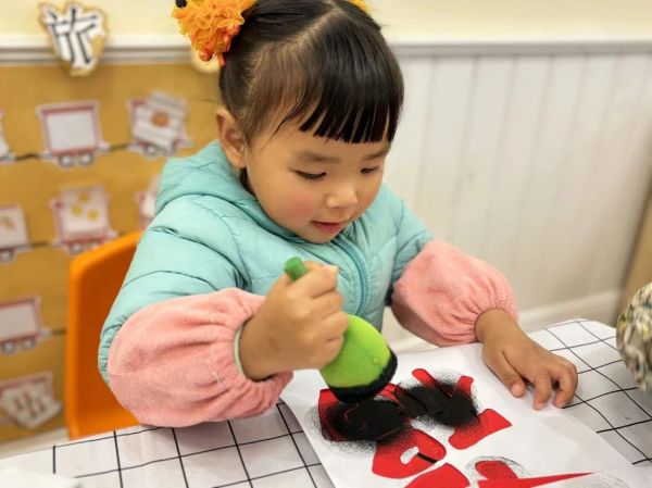 拓印“福”字、裝飾新衣等手工活動讓幼兒在感知、操作過程中,體驗民俗文化與過年時那其樂融融的氛圍,為幼兒留下一份年味十足的童年回憶。