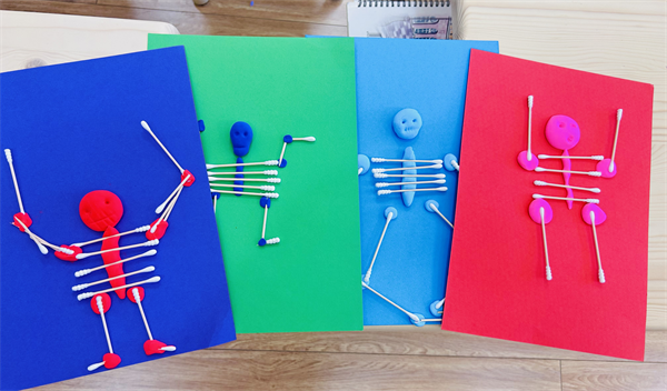 對(duì)于孩子們來(lái)說(shuō),骨骼既是熟悉的,又是陌生而神秘的,因?yàn)楣趋离[藏在每個(gè)人的身體里。在家長(zhǎng)的帶領(lǐng)下,大二班的孩子們開(kāi)始了制作棉簽骨骼小人的活動(dòng),在動(dòng)手操作中體會(huì)骨骼的神奇與重要。