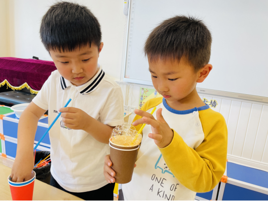 昕昕:“有一些泡泡會(huì)粘在一起?!?/p>