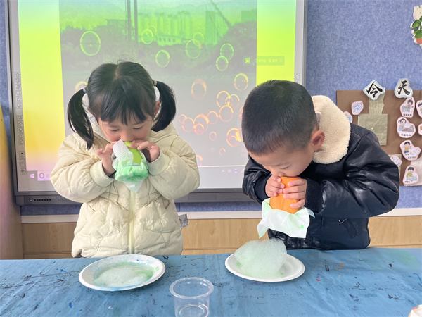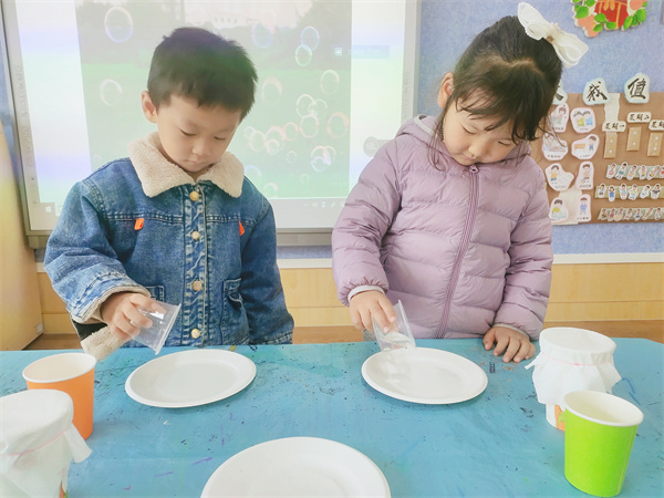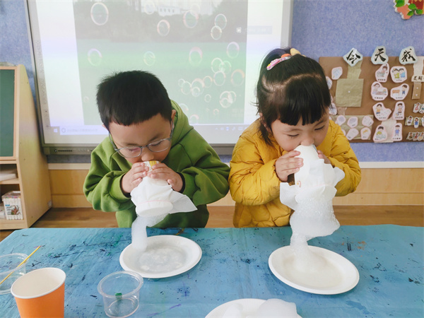 “興趣是最好的老師”,當幼兒對一件事物產(chǎn)生好奇與興趣時,他們的探究和學(xué)習(xí)才是主動且深刻的。面對“泡泡”,幼兒總有數(shù)不盡的憧憬,享不完的樂趣。在這次科學(xué)探索活動中,幼兒在玩中學(xué),在學(xué)中玩,享受著學(xué)習(xí)的樂趣,體驗著成功的喜悅。泡泡的故事還在繼續(xù),期待遇見更多的美好,發(fā)現(xiàn)更多生活的樂趣。