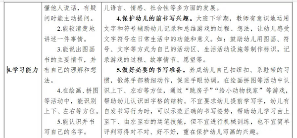 《3-6歲兒童學(xué)習(xí)與發(fā)展指南》明確把書面表達(dá)的愿望和書寫初步技能納入語(yǔ)言教育目標(biāo)體系,并提出: