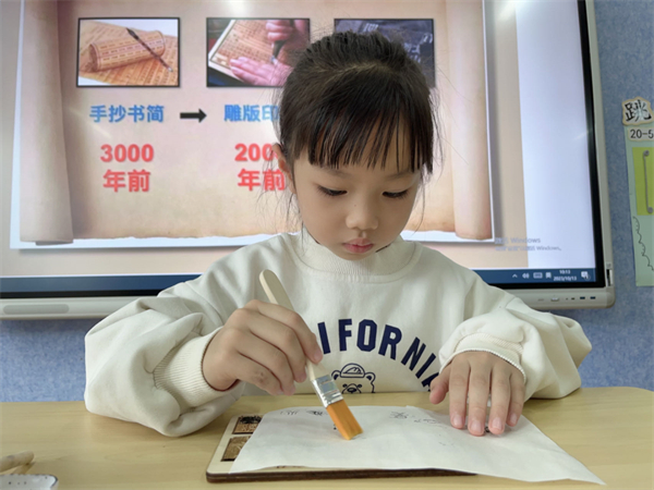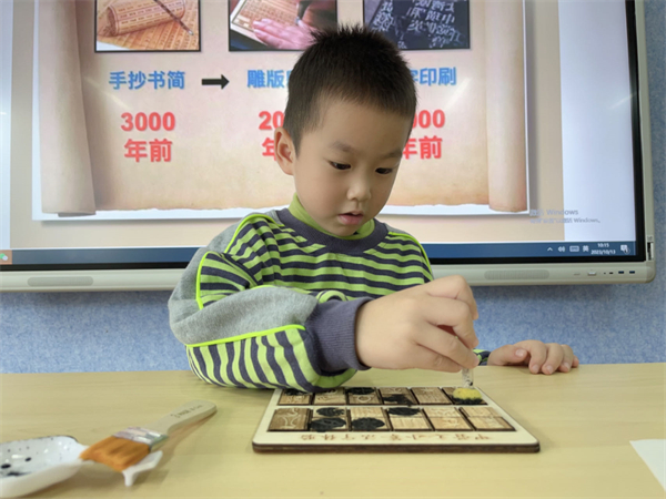 穿越時(shí)光隧道,師幼一起手握“活字”的墨香,一起觸摸古法技藝的神奇,感受印刷漢字的溫情與魅力。