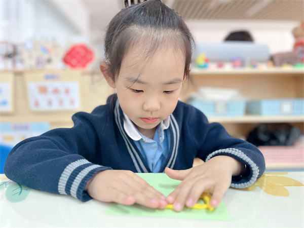 在握筆書寫之前要進(jìn)行肌肉協(xié)調(diào)性的練習(xí),訓(xùn)練幼兒靈活地控制手指和運(yùn)用手指慣性,練習(xí)拇指、食指與中指配合手腕動(dòng)作的協(xié)調(diào)性。研究證明,幼兒精細(xì)動(dòng)作表現(xiàn)得較好,可能傾向于在書寫行為上用時(shí)較短、筆跡更加流暢。幼兒園通過(guò)一日生活、游戲等活動(dòng),如系鞋帶、穿脫衣服、積木建構(gòu)、繪畫和手工剪紙等來(lái)鍛煉幼兒的精細(xì)動(dòng)作。