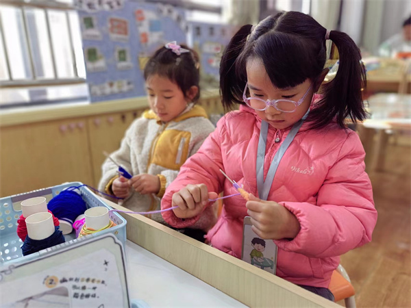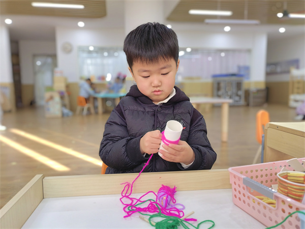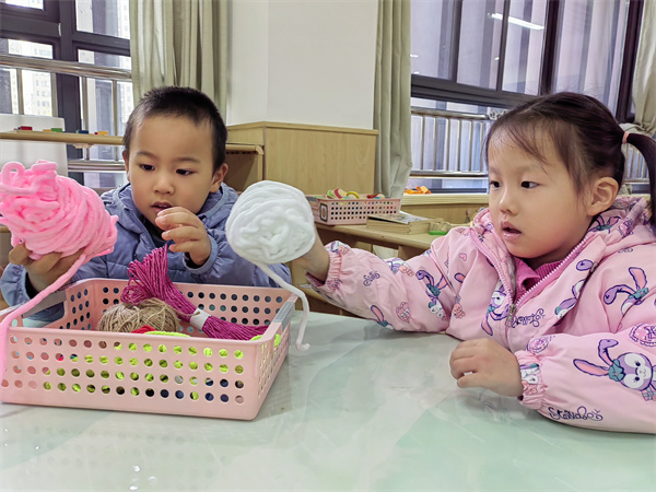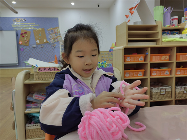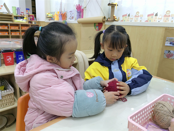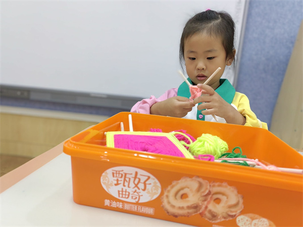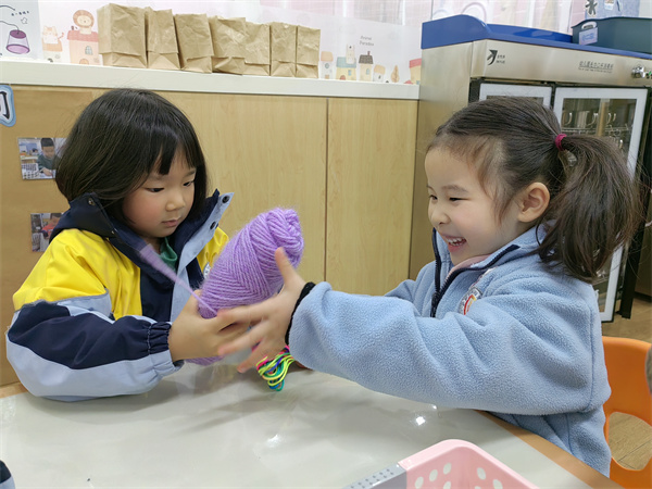 樂恩:“上次吳昀朵帶來了紙芯桶,可以把毛線繞在那個上面就好了?!?/p>
