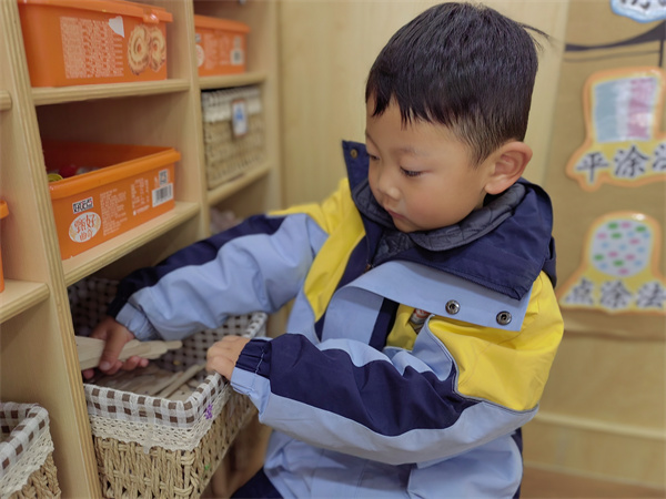 下午小朋友吃完點心,開始到功能室活動——木工坊,小朋友們開心地來到木工坊借助機(jī)器把木板切割成小魚的形狀,一部分小朋友被編織區(qū)的毛線所吸引,看到墻上掛的毛線和編織的成品忍不住去摸。