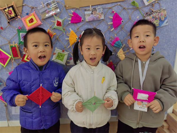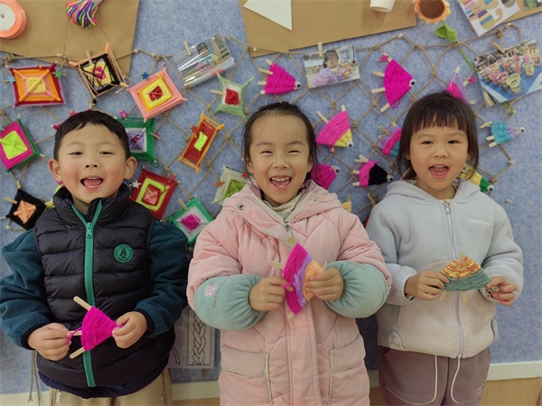 在游戲中,小朋友們的幸福和滿足顯而易見,教師也被這群充滿好奇心,愛探索的小朋友感動著。小朋友們在動手玩中了解編織,學(xué)會編織,同時也發(fā)展了各方面的能力。