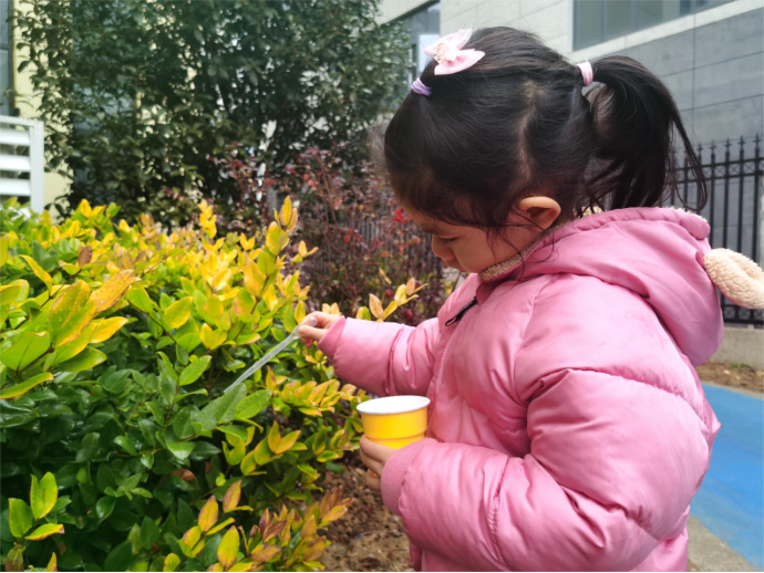 雨水節(jié)氣前后,萬物開始萌動,真正的春天就要到了。家長可以帶著孩子穿上雨衣雨鞋,來到室外,一起去感受雨水,觀察雨落時和落下后它的樣子,伸出小手去接雨、感受雨,好似在和雨水一起嬉戲玩耍。嗅聞它的氣味、摸摸它的溫度,進行春雨的收集。