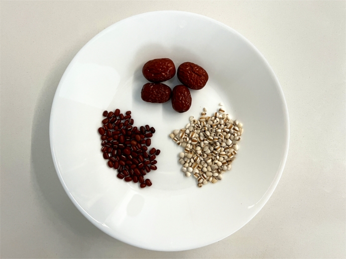 【食材】準備薏米150g,紅豆100g,紅棗100g。