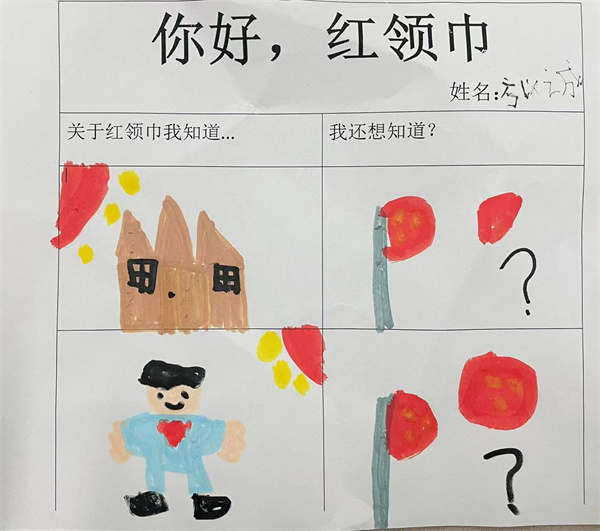 紅領(lǐng)巾究竟是什么?關(guān)于紅領(lǐng)巾我知道哪些?紅領(lǐng)巾為什么是紅色的?孩子們?yōu)榱伺宄P(guān)于紅領(lǐng)巾的秘密,幼兒嘗試著用自己的方法解決疑惑。