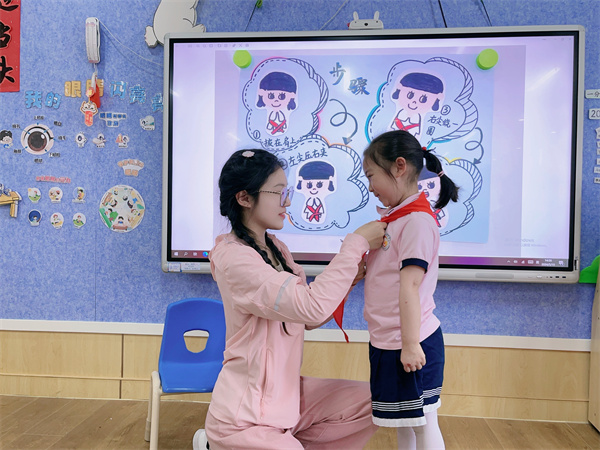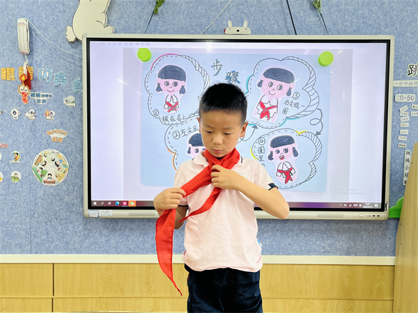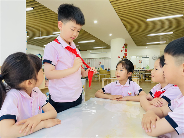 對(duì)于孩子們來(lái)說(shuō),戴上紅領(lǐng)巾,樹(shù)立了自信心,為今后進(jìn)入小學(xué)學(xué)習(xí)奠定基礎(chǔ)。