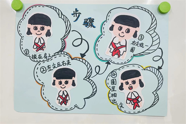 認(rèn)識(shí)了紅領(lǐng)巾之后,寶貝們學(xué)習(xí)了系紅領(lǐng)巾的步驟及方法。