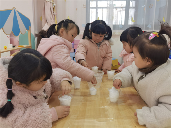 在冬日的陽光下,一群可愛的幼兒興致勃勃地進(jìn)行了一場有趣的實驗。他們拿著熱水和鹽,準(zhǔn)備比較哪一個能更快地融化雪花。通過這個實驗,孩子們初步了解了熱量、鹽度與物體融化速度之間的關(guān)系。感受到了大自然的神奇,并度過了一個難忘的冬日時光。