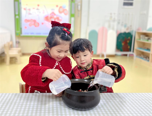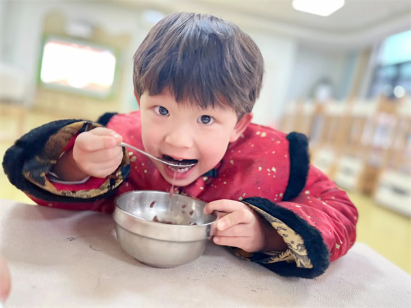 “進(jìn)了臘月門,轉(zhuǎn)眼就是年”,中華傳統(tǒng)節(jié)日臘八節(jié)蘊(yùn)含著豐富的教育資源和文化內(nèi)涵。通過本次臘八節(jié)活動(dòng),小朋友們可以了解臘八節(jié)的由來、習(xí)俗及相關(guān)知識(shí),并在親身動(dòng)手實(shí)踐中激發(fā)對(duì)中華文化、民族節(jié)日的興趣。在這個(gè)寒冷的冬日里,喝一碗臘八粥,感受臘八節(jié)帶來的溫暖和快樂!在這個(gè)充滿溫馨愛意的臘月里,祝愿合肥市藍(lán)光融熠幼兒園全體師幼諸事“粥”全,幸福常伴“粥”圍!