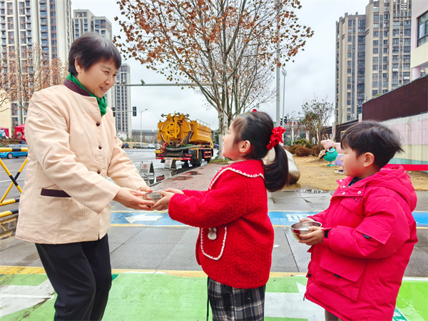 大家快瞧!在這個(gè)寒冷的冬天里,制作臘八粥的小朋友們把一碗碗熱氣騰騰的臘八粥送給了園門口站崗的保安爺爺,感謝他辛苦的保衛(wèi)我們的幼兒園。與此同時(shí),廚房阿姨們和保潔奶奶也收到了甜甜的臘八粥,不禁贊嘆:“真的太溫暖了!謝謝可愛的小朋友們!”