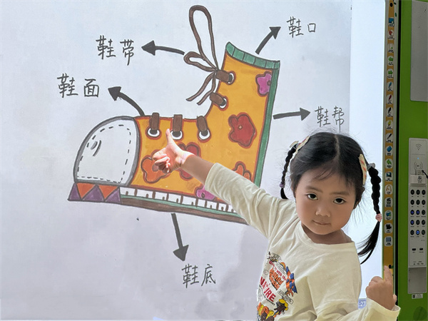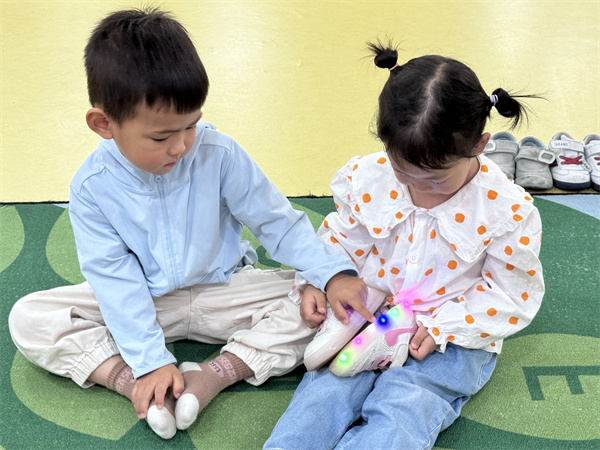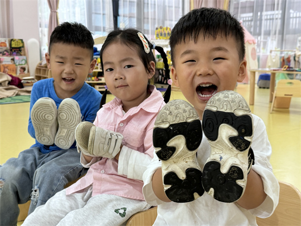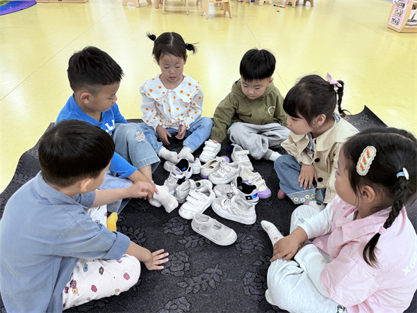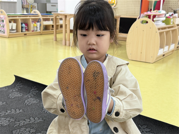 為什么鞋底不是光滑的?我的鞋子比他的大嗎?為什么他的鞋子會(huì)發(fā)光?孩子們的腦袋里總是冒出這樣那樣的問(wèn)題,帶著這些問(wèn)題我們帶領(lǐng)孩子們?nèi)デ笾?、探索和?shí)踐。