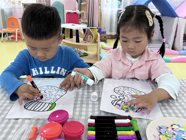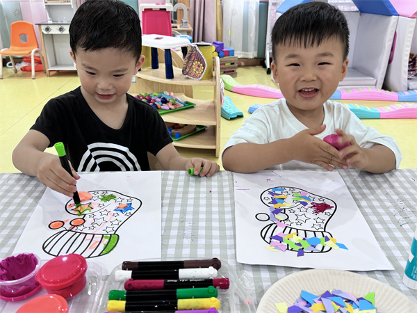 孩子們常常把創(chuàng)意美工當(dāng)作一種游戲,涂涂、畫(huà)畫(huà)深受他們的喜愛(ài)。瞧,孩子們化身為小小藝術(shù)家,通過(guò)撕、貼、粘、畫(huà),制造出一雙雙屬于自己的小鞋子。