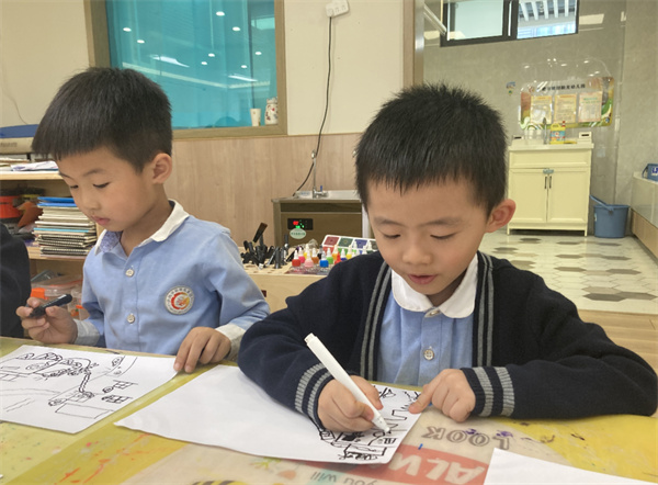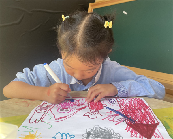 教師利用多媒體講解讓幼兒了解消防安全知識,引導幼兒完成一幅有關“消防”的主題繪畫,孩子們用手中的畫筆結合豐富的想象表達出自己對消防安全的認識和理解,描繪出自己對消防知識的掌握以及對消防員的崇拜之情。