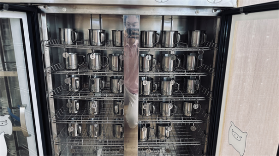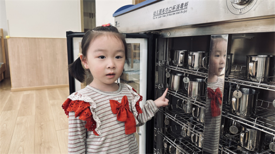 水杯柜是班級所有幼兒水杯的家,每位幼兒都有專屬于自己的小水杯,幼兒的水杯架上有獨屬于自己的數(shù)字牌,可以尋找到屬于自己的水杯。