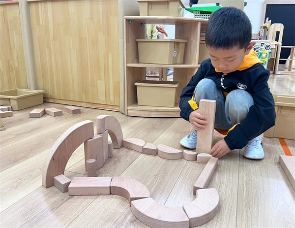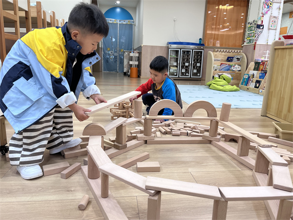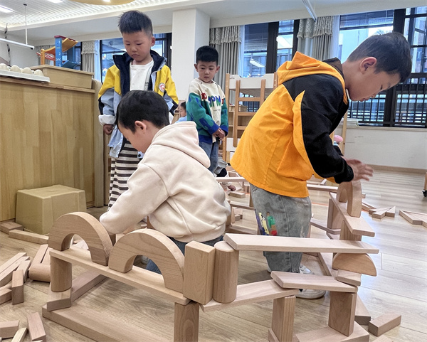 在老師的帶領(lǐng)下,幼兒通過視頻、圖片等方式認(rèn)識(shí)到了這次亞運(yùn)會(huì)舉辦場(chǎng)地——杭州奧體中心,小朋友們躍躍欲試,用積木搭建的方式筑造起了自己心中的運(yùn)動(dòng)場(chǎng)館。