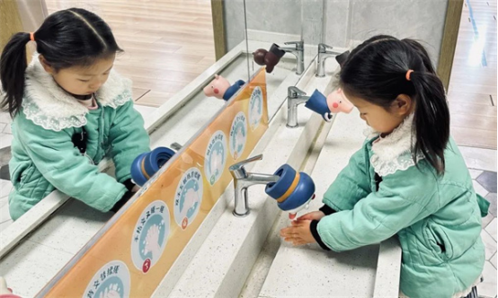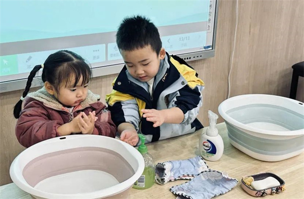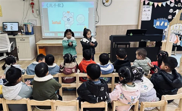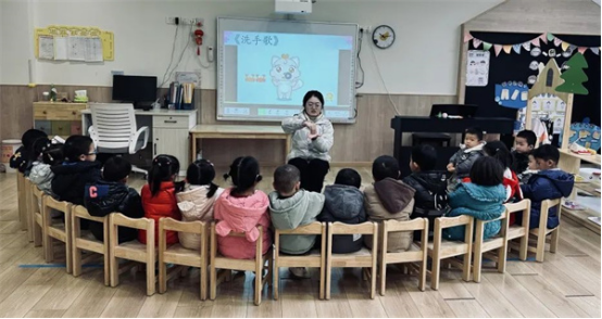 老師以圖片、兒歌和操作示范相結(jié)合的方式,細(xì)心地講解了洗手七步法的具體操作步驟。