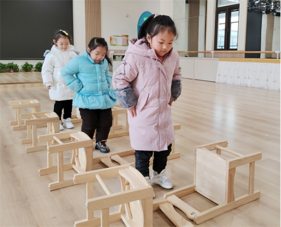 《指南》中指出:我們要充分尊重和保護(hù)幼兒的好奇心和探究興趣,相信每一個幼兒都是積極主動、有能力的學(xué)習(xí)者,最大限度地支持和滿足幼兒通過直接感知、實際操作和親身體驗獲取經(jīng)驗的需要。因此我們以幼兒積極主動性為原則,使運動以一種常態(tài)方式伴隨著孩子的生活,讓孩子們盡情地利用小椅子做各種游戲,培養(yǎng)孩子勇敢自信和創(chuàng)新的精神,在合作游戲中互相幫助,嘗試自己解決問題,促進(jìn)其身體的、認(rèn)知的和情感的、社會性的多元發(fā)展。