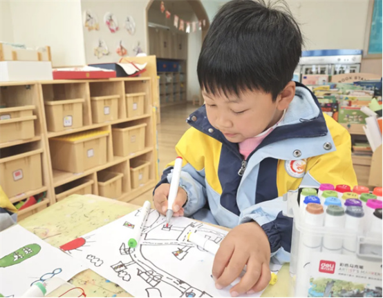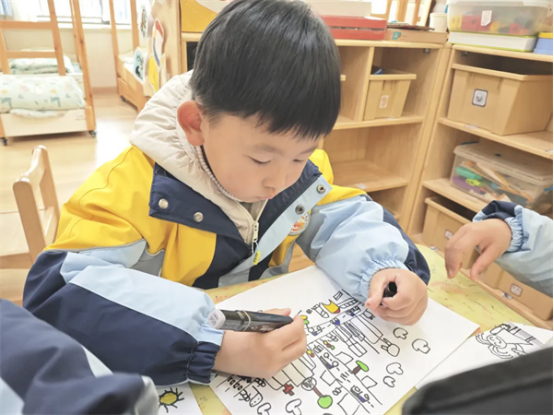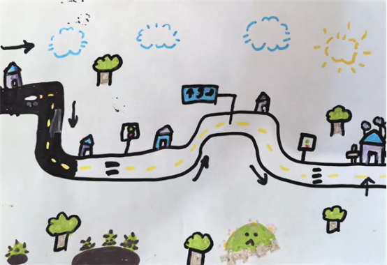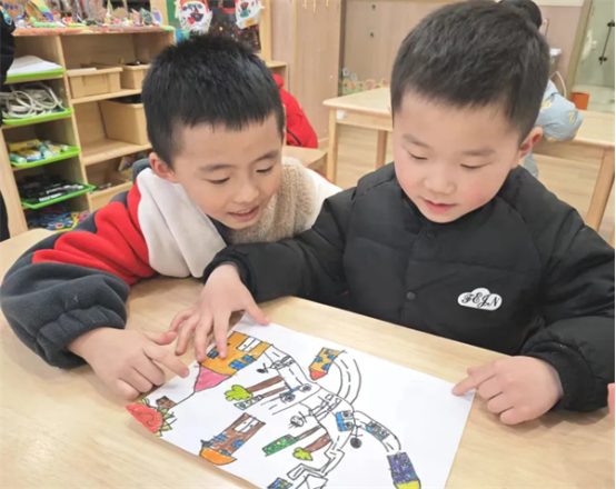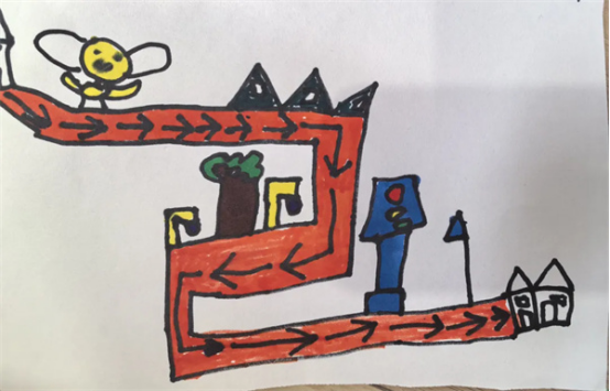就這樣,帶著對比和分析的任務,小朋友們歸納出一張清晰的路線圖,帶著對比和分析的任務,開始進行繪制路線圖。