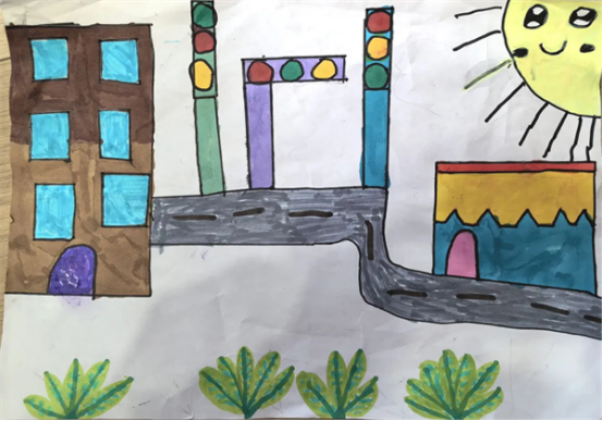 幼兒園就在我家小區(qū)門口,我走路上學一會就到了。但是我們要路過好幾個路口。