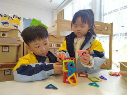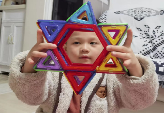 在小朋友的眼里,世界充滿了奇妙的色彩!為什么天會(huì)這樣藍(lán),為什么花兒總是這么鮮艷?為什么小鳥能飛翔……孩子們的好奇心像一顆永不熄滅的火苗,生活中再常見的事物都能引起他們極大的關(guān)注。今天中五班的孩子們就對(duì)區(qū)角中的磁力片產(chǎn)生了極大的興趣。