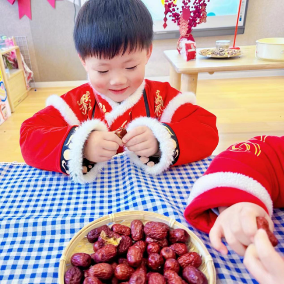 窗外瑞雪飄飄,屋內(nèi)粥香縈繞。臘八節(jié)人們喝臘八粥是最講究的習俗。暖暖香香的臘八粥由紅豆、黑米、蓮子、紅棗……各種五谷雜糧組成。老師帶領孩子們一起認識臘八粥的食材,一起動手煮一鍋甜甜的臘八粥,小朋友們你一口,我一口,吃的可開心啦!