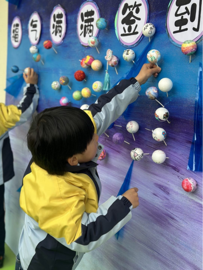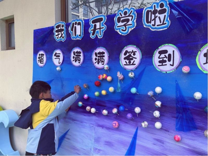 以開學(xué)之名,載祝福之意。清晨,孩子們正歡呼雀躍地步入久違的幼兒園,在一個個大大的擁抱、一聲聲熱情的“早上好”中拉開了新學(xué)期的帷幕。絢爛的星球,每顆星球都蘊藏了一個甜美的夢,瞧!孩子們將自制的DIY“星球棒棒糖”插在“宇宙”簽到板上,同宇宙星空來一次親密接觸,點亮屬于自己的星球。滿滿的希望、滿滿的祝福,寓意著新學(xué)期、新啟航,新的一年更加棒棒棒!