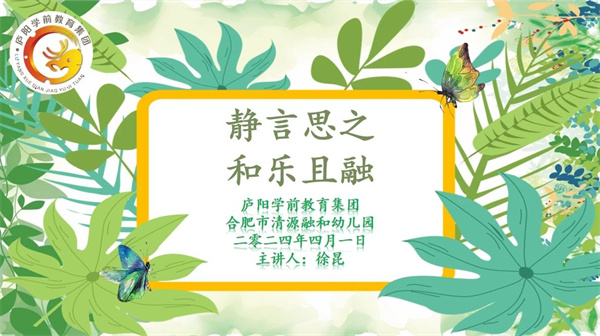 合肥市清源融和幼兒園執(zhí)行園長徐昆關(guān)于園所環(huán)境創(chuàng)設(shè)帶來了微講座——“靜言思之 和樂且融”。講座中,徐昆園長圍繞園所整體環(huán)境、主題環(huán)境、區(qū)角游戲環(huán)境、自然角環(huán)境、家長園地以及走廊設(shè)計(jì)等方面進(jìn)行了詳細(xì)的講解與闡述。