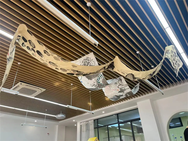 小朋友們通過(guò)欣賞《長(zhǎng)江萬(wàn)里圖》,對(duì)張大千的水墨畫(huà)作品深深吸引住了小朋友們。與小朋友一起認(rèn)識(shí)墨,循著張大千的筆觸,走進(jìn)了水墨畫(huà),嘗試以獨(dú)特的形式致敬、對(duì)話藝術(shù)大師,表達(dá)對(duì)藝術(shù)的感知和理解。