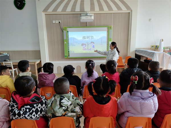 老師通過(guò)視頻、圖片、故事等方式讓孩子們知道植樹(shù)節(jié)的由來(lái)、植樹(shù)節(jié)節(jié)徽,以及讓孩子們了解樹(shù)的結(jié)構(gòu)。