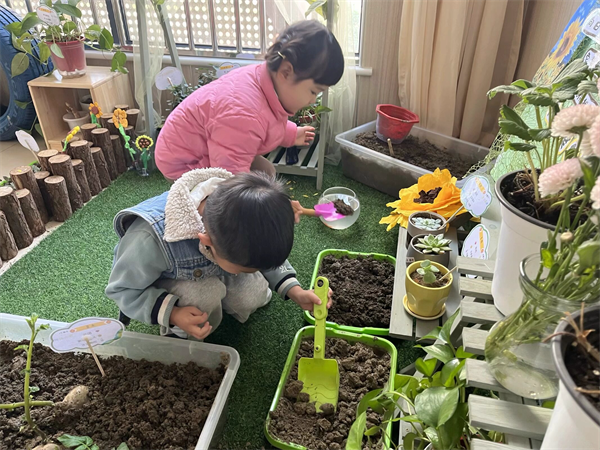 為了更有利于幼兒去觀(guān)察,讓幼兒更好地走進(jìn)自然,培養(yǎng)幼兒對(duì)植物的興趣,孩子們與老師一起創(chuàng)設(shè)了豐富的植物角,為幼兒園增添了一份生機(jī),充分感受到春天的美麗。幼兒在老師的指導(dǎo)下學(xué)習(xí)照料、管理植物,用自己的方式來(lái)記錄植物的生長(zhǎng)過(guò)程。
