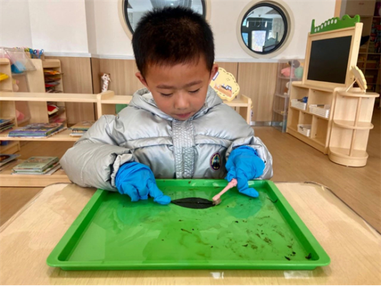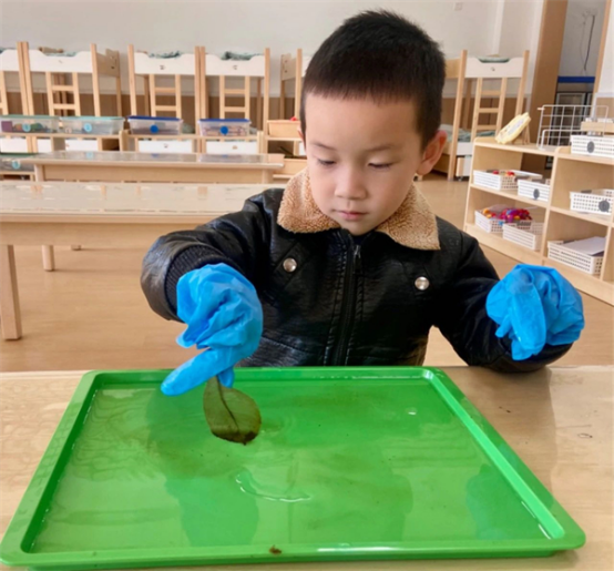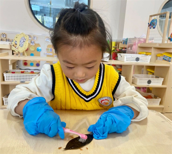 幼兒3:“我這個(gè)是廣玉蘭的葉子,我也刷了很久但是葉肉怎么都刷不掉呀!