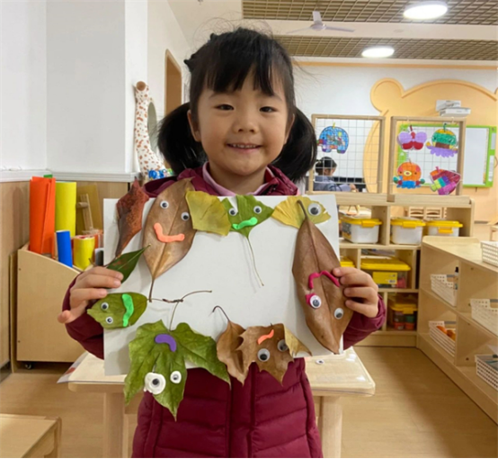 根據(jù)孩子們的興趣,我們以“樹(shù)葉”為材料開(kāi)展區(qū)域活動(dòng),把葉子變成了“情緒小怪獸!”