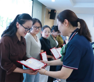 隨后,教師們?yōu)楸緦W期新推選的家委會、伙委會委員們頒發(fā)聘書。薄薄的聘書,承載的是新的期盼;身份的疊加,意味著更多的責任。家委們手握責任,也接過了幼兒園的信任和期盼。頒發(fā)聘書,并合影留念。