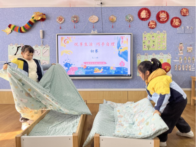 為了引導(dǎo)幼兒懂得自己的事情自己做,增強(qiáng)幼兒的獨(dú)立性和自信心,促進(jìn)幼兒身體的協(xié)調(diào)性和靈活性發(fā)展,2024年1月11日,在執(zhí)行園長楊開君的精心部署下合肥市和月融匯幼兒園開展以“悅享生活,巧手自理”為主題的幼兒自理能力比賽。