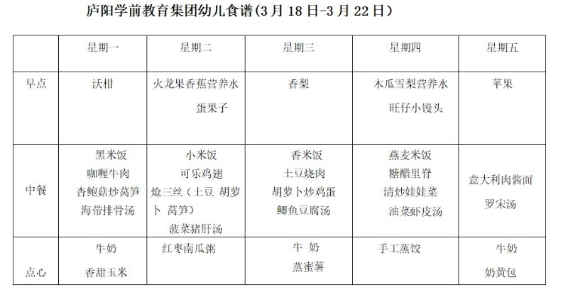 廬陽學(xué)前教育集團(tuán)2024年3月18日-3月22日幼兒食譜