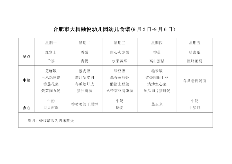 廬陽學(xué)前教育集團(tuán)2024年9月2日-9月6日幼兒食譜