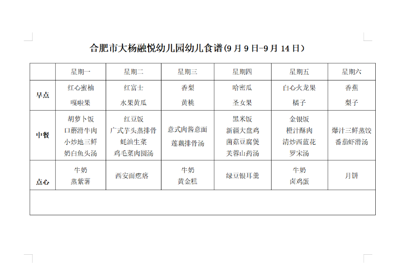 廬陽教育發(fā)展集團(tuán)2024年9月9日-9月14日幼兒食譜