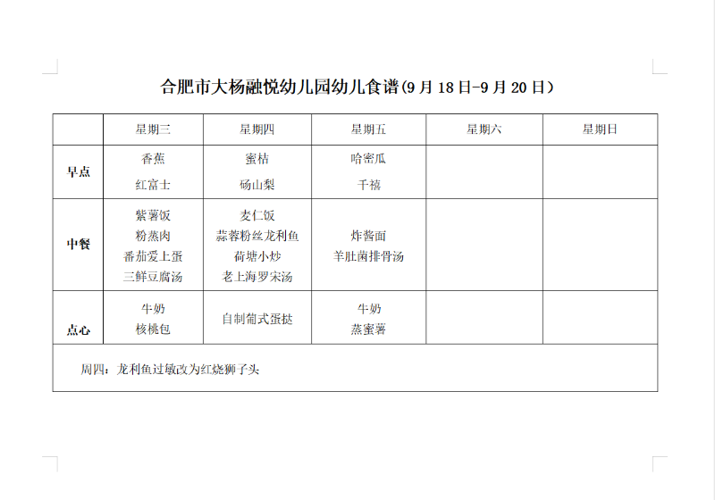 廬陽教育發(fā)展集團(tuán)2024年9月18日-9月20日幼兒食譜