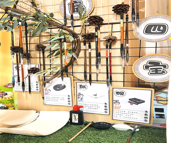 文房四寶以獨特的神韻和風采,精美博深的藝術造型,為燦爛的中華文化譜寫出累累篇章。通過實物的觀察幼兒了解到文房四寶分別是筆、墨、紙、硯。在探索的過程中掌握正確執(zhí)筆及基本運筆的方法。萌發(fā)幼兒對傳統(tǒng)水墨畫的興趣、感悟水墨獨特的審美情感。