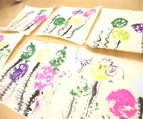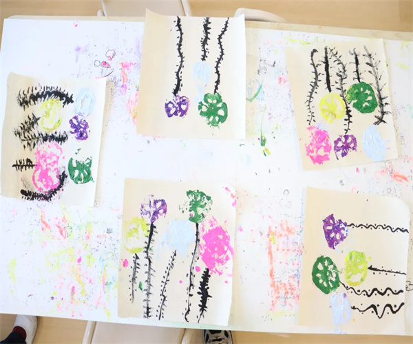 幼兒通過欣賞不同種類的荷花,了解荷花的生長環(huán)境、生活習性。在繪制過程中,學習用顏色的深淺變化來表現(xiàn)物體的立體效果,學習運用蓮藕拓印的畫法,完成一幅荷塘水墨作品。