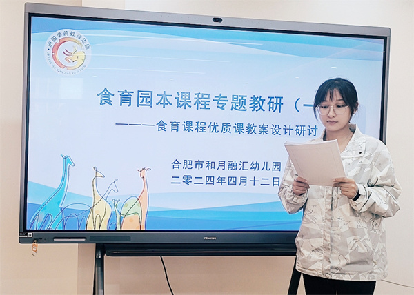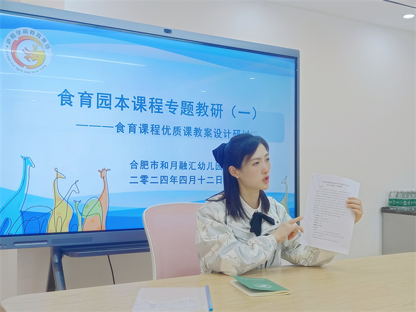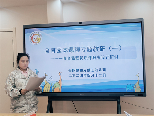 “教而不研則淺,研而不教則空”,教學(xué)與教研如同兩扇翅膀,是平衡教育教學(xué)發(fā)展的經(jīng)緯。為深入貫徹《3-6歲兒童學(xué)習(xí)與發(fā)展指南》精神,進(jìn)一步提升教師教科研水平及教育教學(xué)的能力,同時(shí)為廬陽學(xué)前教育集團(tuán)優(yōu)質(zhì)課競賽活動做好充足準(zhǔn)備。2024年4月12日,合肥市和月融匯幼兒園全體教師在業(yè)務(wù)負(fù)責(zé)趙曉艷的帶領(lǐng)下共同參加了“食育園本課程專題教研(一)——食育課程優(yōu)質(zhì)課教案設(shè)計(jì)研討活動”。