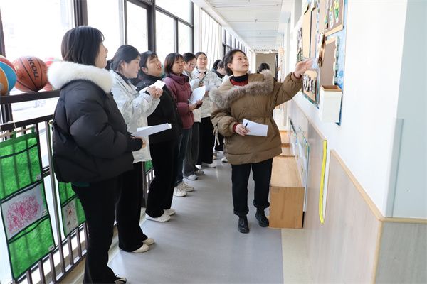 老師們懷著期待的心情,帶著虛心學(xué)習(xí)的態(tài)度,走進(jìn)班級開啟觀摩學(xué)習(xí),各班教師圍繞班級主題墻創(chuàng)設(shè)思路、主題脈絡(luò)、呈現(xiàn)形式、內(nèi)容的設(shè)計亮點(diǎn)、主題的開展與實(shí)施等多角度進(jìn)行了全面且詳細(xì)的解說,老師們一邊傾聽,一邊認(rèn)真觀摩主題墻的每個板塊。評比采取參觀講解和現(xiàn)場交流相結(jié)合的方式進(jìn)行,由各班老師擔(dān)任講解員,全面細(xì)致地介紹班級在主題背景下區(qū)域環(huán)境創(chuàng)設(shè)的思路和方法。大家邊觀摩邊學(xué)習(xí),相互借鑒,相互鼓勵,同時趙婉園長向老師們提出具有針對性的建議和意見。