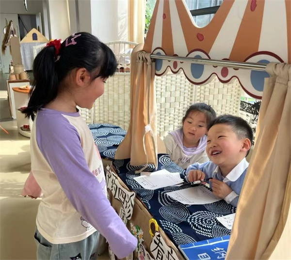 幼兒園里真好玩,甜品店、娃娃家、大舞臺、燒烤店、奶茶店、照相館、海底撈、花藝坊好多好多游戲???,巧手能干的小廚師、熱情待客的服務員、可愛的娃娃家游戲和熱火朝天的大舞臺。清源融和幼兒園的“角色游戲”正在火熱開展中……
