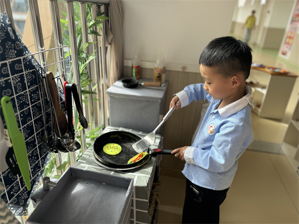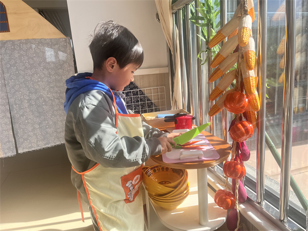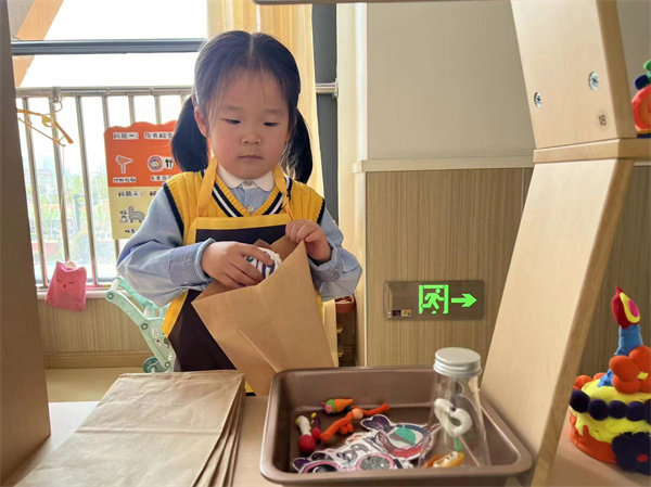 游戲中,幼兒根據(jù)自己的角色扮演,熱情與他人互動,選擇豐富的游戲材料,積極與同伴分工合作,幼兒在生活化的游戲環(huán)境,豐富多元的游戲材料,寬松愉悅的互動情境中,感受著“自主、自由、自發(fā)”的快樂。