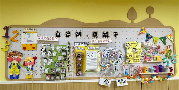 大班主題墻創(chuàng)設(shè)注重幼兒的思考、探究、參與和自我表達(dá),通過多元互通的環(huán)境,支持幼兒進(jìn)行深度學(xué)習(xí),記錄兒童的思考和行動,通過以往經(jīng)驗引導(dǎo)孩子們深度探索。